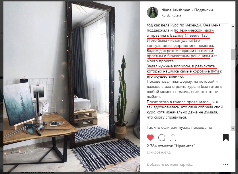 Блогер и талантливый художник Диана Лакшман. Создала свою онлайн школу рисования акварелью.https://www.instagram.com/p/BqE8Tj0l1Vu/Удивитесь, но эта идея принадлежала не мне, а моим читателям! Когда после долгого перерыва я вновь взялась за краски и кисти, стали поступать сообщения: «Научите меня! Я хочу писать так же»